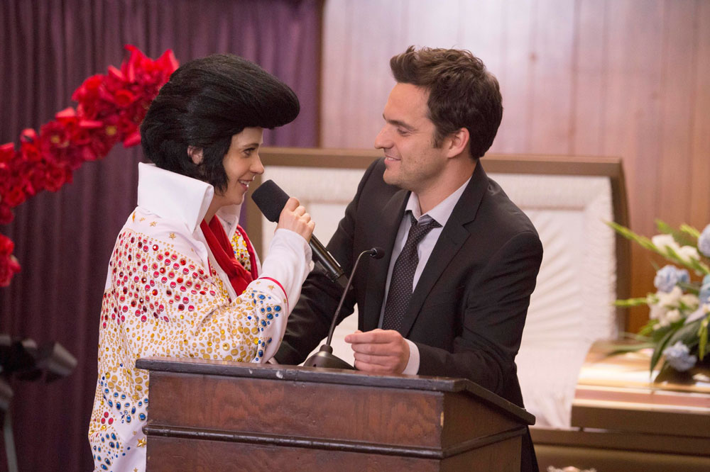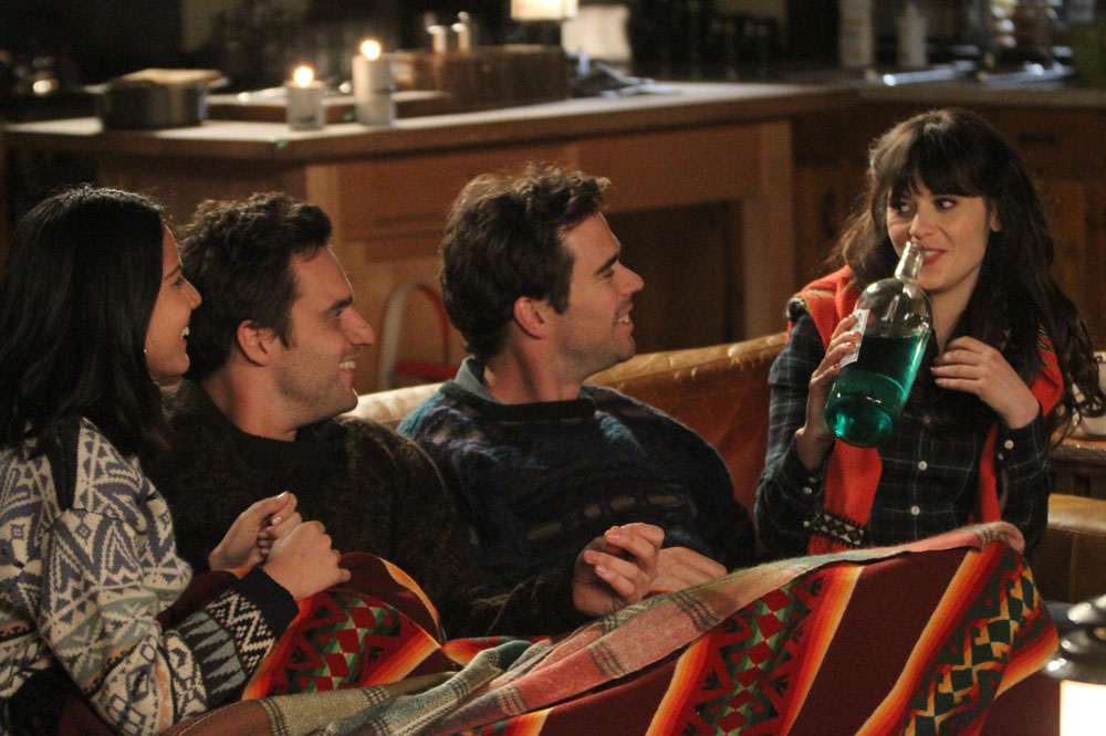 Nick and Angie (Olivia Munn) accompany Jess and Sam (David Walton) on a weekend getaway to a cabin, and absinthe consumption gives Angie the idea that the couples are swapping partners. So yeah, it gets weird -- though that weirdness opens up to a moment where Jess tells Nick that Angie doesn't deserve him. Also weird: Jess and Nick both date cast members from the defunct NBC sitcom Perfect Couples.