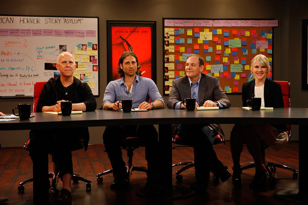 Photo Credit: Still from THE WRITERS' ROOM: AMERICAN HORROR STORY3. "Zerts' are what I call desserts. 'Trée-trées' are entrées. I call sandwiches 'sammies,' 'sandoozles,' or 'Adam Sandlers.' Air conditioners are 'cool blasterz' with a 'z' — I don't know where that came from. I call cakes 'big ol' cookies.' I call noodles 'long-ass rice.' Fried chicken is 'fry-fry chicky-chick.' Chicken parm is 'chicky-chicky-parm-parm.' Chicken cacciatore? 'Chicky-cacc.' I call eggs 'pre-birds,' or 'future birds.' Root beer is 'super water.' Tortillas are 'bean blankets.' And I call forks 'food rakes.'" - Tom Haverford / Parks and Recreation