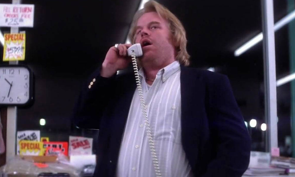 It’s a meltdown times two as Barry Egan (Adam Sandler) confronts Dean Trumbell (Philip Seymour Hoffman), the mattress-salesman/phone-sex line manager who’s extorting him from afar. “What’s your name, sir! Answer me!” yells Barry. More yelling, until Dean says, “Shut up! Shut the fuck up! Shut up! Will you shut up! Shut up! Shut shut shut shut shut up! Shut up!” But that’s only the start of his meltdown; he truly loses it after Barry tells him to go fuck himself, at which point he looks genuinely shocked before stuttering out a threat: “You’re dead.”